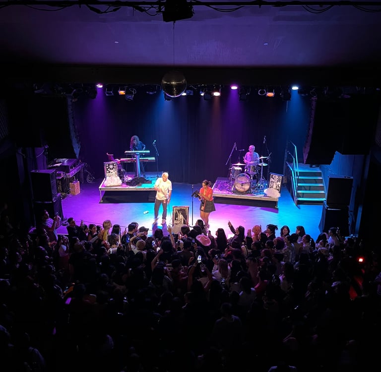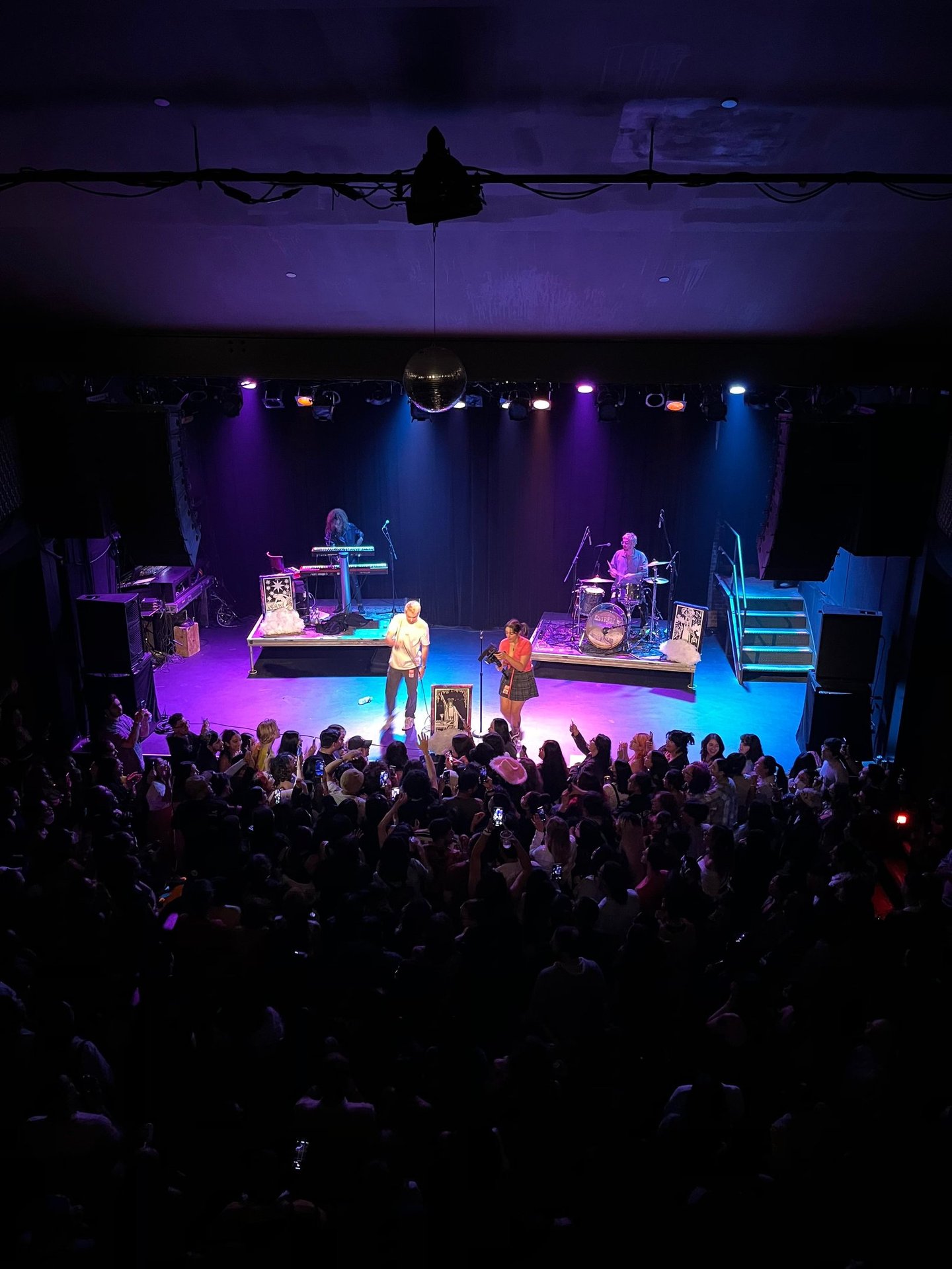 Me onstage corralling a mic cable during Ambar Lucid's sold out NYC show on the 2022 Estrella Tour